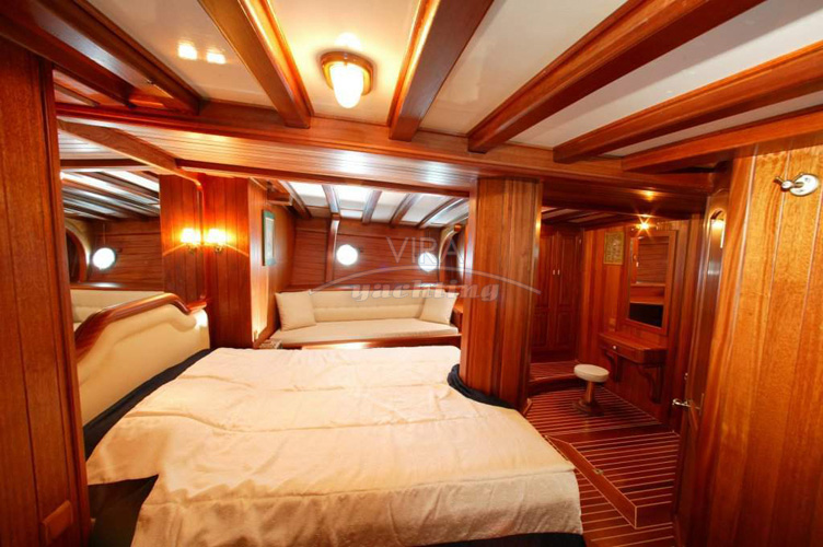 Una goleta turca de Bodrum, con hermosas líneas clásicas y un ambiente marítimo, interiores de caoba preciosos, una amplia cubierta, muy buenas prestaciones de navegación a vela y un servicio extraordinariamente atento y personalizado. Es la embarcación ideal para la familia o varias parejas exigentes, sobre todo para amantes de la navegación a vela, deseando hacer un crucero lujoso en Turquía.