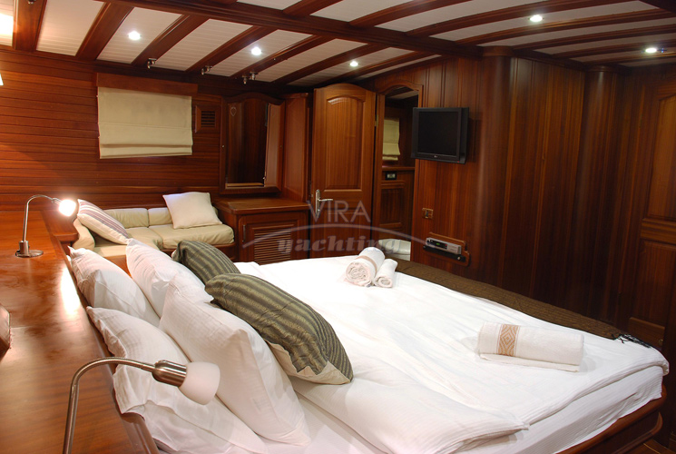 Una goleta de superlujo de Bodrum con interiores clásicos de caoba y modernos detalles decorativos, camarotes confortables, amplias y elegantes zonas de cubierta así como un servicio impecable por la tripulación experimentada. La goleta dispone de un equipamiento técnico de muy alto nivel, incluso Wi-Fi y moto acuática. Es la embarcación perfecta para 1-2 familias o varias parejas muy exigentes deseando hacer un crucero lujoso con un confort total en un ambiente selecto.